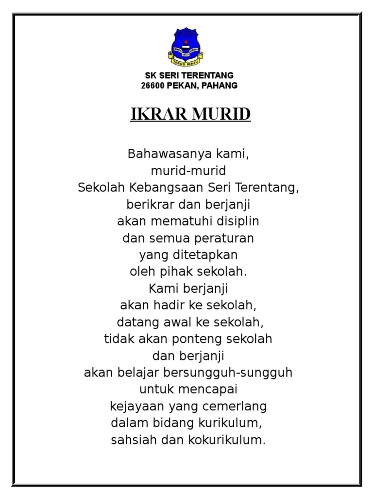 Ikrar Murid Jom Ke Sekolah Pdf